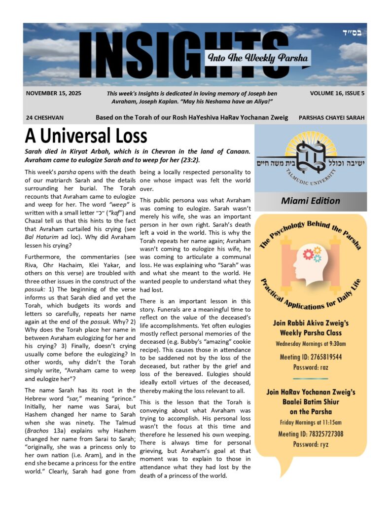 BereishisNoachLech LechaVayeiraChayei SarahToldosVayeitzeiVayishlachVayeishevMikeitzVayigashVayechiShemosVa’eiraBoBeshalachYisroMishpatimTerumahTetzavehKi SisaVayakhel-PekudeiVayikraTzavPesach EditionSheminiTazria-MetzoraAcharei Mos-KedoshimEmorBehar-BechukosaiBamidbarNassoBeha’aloschaShelachKorachChukas-BalakPinchasMattos-MaseiDevarimVa’eschananEikevRe’ehShoftimKi SeitzeiKi SavoNitzavim-VayelechRosh HashanaHa’azinuSuccos